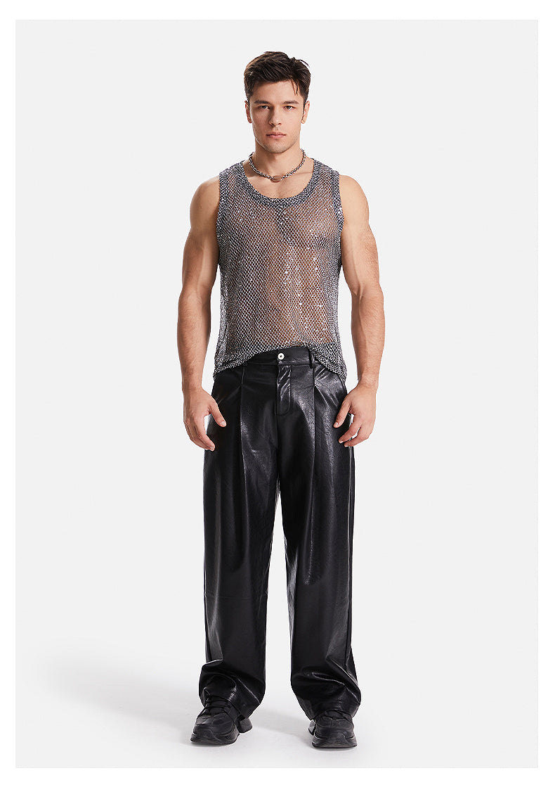 Sexy Hollow Grid Sleeveless Men's Tank Top
